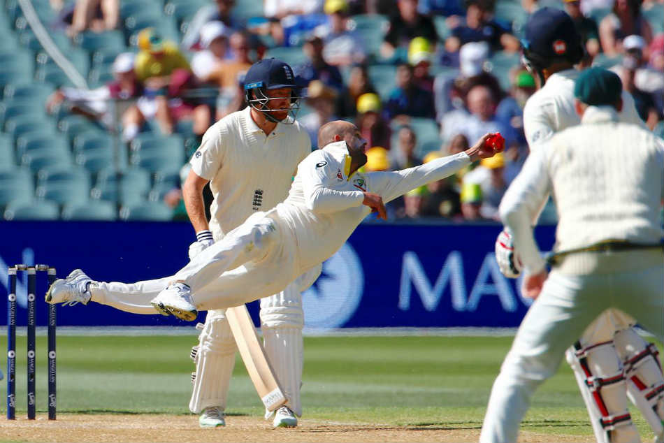 ఆ బంతి మొయిన్ అలీ బ్యాట్ ఎడ్జి తీసుకుని అమాంతం గాల్లోకి లేచింది. అంతే మెరుపు వేగంతో డైవ్ చేసిన లియోన్ బంతిని ఒంటి చేత్తో ఒడిసి పట్టుకున్నాడు. అప్పటికే ఐదు వికెట్లు కోల్పోయి కష్టాల్లో ఉన్న ఇంగ్లండ్కు అద్భుతమైన క్యాచ్తో లియోన్ షాకిచ్చాడు. లియోన్ పట్టిన క్యాచ్ 'ది బెస్ట్ కాట్ అండ్ బౌల్డ్' వికెట్లలో ఒకటిగా నిలిచిపోయింది.