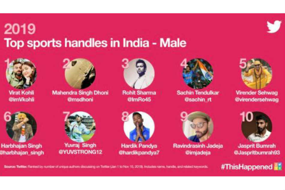 హైదరాబాద్: 2019 సంవత్సరంలో అత్యధిక ట్వీట్లు చేసిన టాప్-10 భారత క్రీడాకారుల ట్విట్టర్ హ్యాండిల్స్ జాబితాను ట్విట్టర్ ఇండియా మంగళవారం విడుదల చేసింది. క్రికెట్ జెంటిల్మెన్ గేమ్. భారత్లో అత్యంత ప్రజాదరణ పొందిన గేముల్లో ఒకటి. దీంతో భారత్లోని చాలా మంది క్రికెటర్లు ట్విట్టర్ ఖాతాలను కలిగి ఉన్నారు.