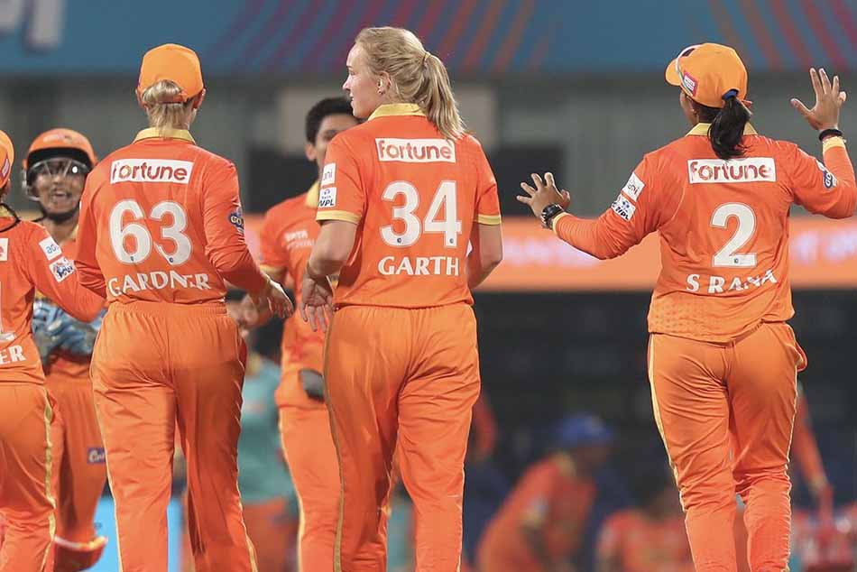 ఈ మ్యాచ్లో టాస్ గెలిచిన గుజరాత్ ముందుగా బ్యాటింగ్ చేయాలని నిర్ణయించుకుంది. ఈ జట్టుకు సబ్బినేని మేఘన (24), సోఫియా డంక్లీ (13) ఫర్వాలేదనిపించారు. అయితే ఆ తర్వాత వచ్చిన హర్లీన్ డియోల్ (46) అద్భుతమైన ఇన్నింగ్స్ ఆడింది. కానీ ఆమెకు సహకారం అందించేవారు కరువయ్యారు. అన్నాబెల్ సదర్లాండ్ (8), సుష్మా వర్మ (9) ఇద్దరూ విఫలమయ్యారు. ఇలాంటి సమయంలో క్రీజులోకి వచ్చిన యాష్లే గార్డనర్ (25) కాసేపు వికెట్ల పతనాన్ని అడ్డుకుంది. గార్డనర్, డియోల్ మంచి భాగస్వామ్యం నెలకొల్పారు. కానీ యూపీ బౌలర్లు ఈ జోడీని విడగొట్టారు.
