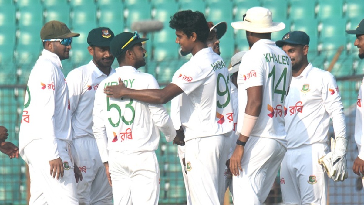 అసలేం జరిగిందంటే..ఖలీద్ అహ్మద్ వేసిన బంతిని ప్రభత్ జయసూర్య షాట్కు యత్నించాడు. కానీ అది ఎడ్జ్ తీసుకుని ఫస్ట్ స్లిప్లో ఉన్న బంగ్లా కెప్టెన్ నజ్ముల్ హొస్సేన్ షాంటో చేతిలో పడింది. కానీ దాన్ని అతడు అందుకోలేకపోయాడు. షాంటో చేతుల్లో పడి గాల్లోకి లేచిన బంతిని సెకండ్ స్లిప్లో ఉన్న షాహదత్ డిపు పట్టుకోవడానికి ప్రయత్నించాడు. కానీ డిపు చేతుల్లో పడి అది కూడా మిస్ అయ్యింది. వెంటనే థర్డ్ స్లిప్లో ఉన్న జకీర్ క్యాచ్ అందుకోవడానికి ట్రై చేశాడు. కానీ ఫలితం లేకపోయింది.