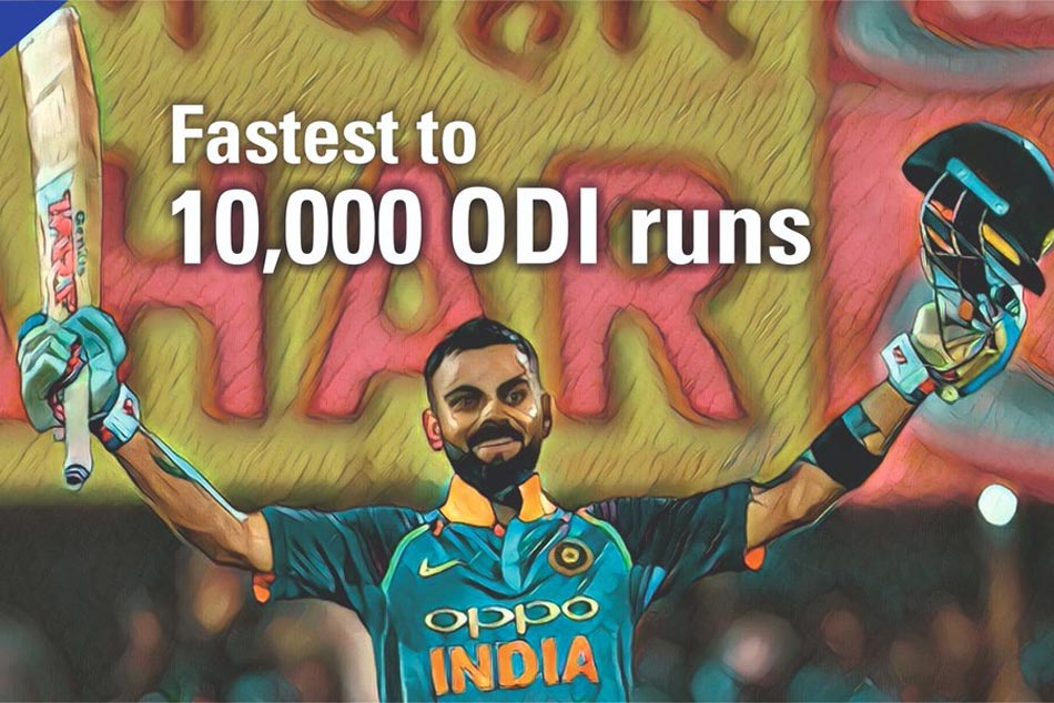 వన్డేల్లో పదివేల పరుగుల మైలురాయిని అందుకోవడానికి సచిన్ 259 ఇన్నింగ్స్లు తీసుకోగా కోహ్లీకి 205 ఇన్నింగ్స్లు అవసరమయ్యాయి. మరోవైపు సౌరవ్ గంగూలీ 263, రికీ పాంటింగ్ 266 ఇన్నింగ్స్లు తీసుకున్నారు. ఇప్పటివరకు సచిన్ (259 ఇన్నింగ్స్) పేరిట ఉన్న రికార్డును కోహ్లీ బద్దలు కొట్టాడు.