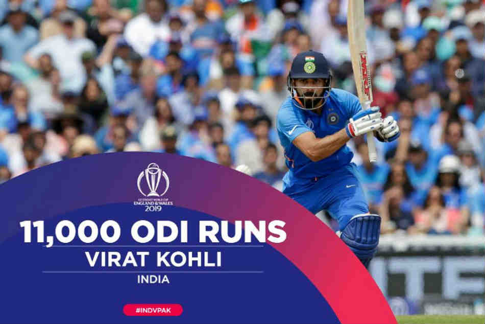 ప్రపంచ క్రికెట్ కప్ 2019లో భాగంగా భారత, పాకిస్థాన్ జట్ల మధ్య జరుగుతున్న మ్యాచ్లో పలు రికార్డులు నమోదవుతున్నాయి. ఈ మ్యాచ్లో కెప్టెన్ విరాట్ కోహ్లీ అరుదైన రికార్డును అందుకొన్నాడు. భారత వన్డే క్రికెట్లో 11 వేల పరుగులు చేసిన తొమ్మిదో ఆటగాడిగా ఘనతను సాధించాడు. ఈ మ్యాచ్లో 57వ పరుగు పూర్తి చేయగానే కోహ్లీ 11 వేల పరుగులు చేసిన ఆటగాడిగా రికార్డు పుటల్లోకి ఎక్కాడు.