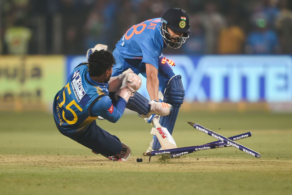 కోహ్లీ పరుగు అందుకోగానే.. మనీశ్ పాండే కూడా అదే తరహాలో స్పందించాడు. దీంతో క్రీజుకి కోహ్లీ చాలా దూరంలో ఉండగానే శ్రీలంక వికెట్ కీపర్ కుశాల్ పెరీరా వికెట్లను గీరాటేశాడు. దీంతో కోహ్లీ నిరాశగా పెవిలియన్కు చేరాడు. అంతేకాదు కోహ్లీ అతి నమ్మకంతో పరుగుకి వెళ్లి మూల్యం చెల్లించుకున్నాడు.