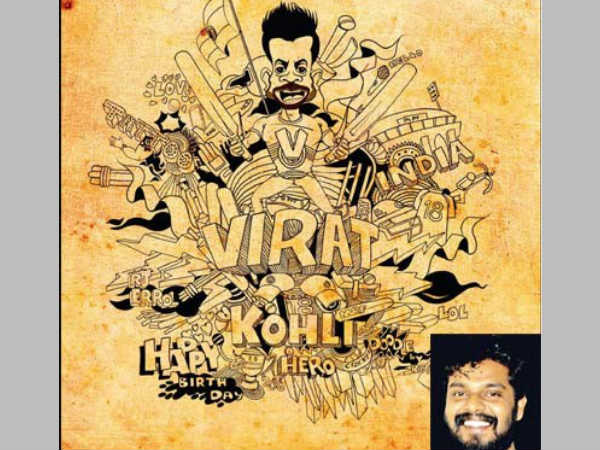 కోహ్లీ పుట్టినరోజు సందర్భంగా కర్ణాటకకు చెందిన కరణ్ ఆచార్య అనే కళాకారుడు ఓ అరుదైన చిత్రాన్ని కానుకగా సిద్ధం చేశాడు. డూడుల్ (గీచిన చిత్రం) తరహాలో విరాట్ కోహ్లీకి సంబంధించి అన్ని విధివిధానాలను అందులో పొందుపరిచాడు.
