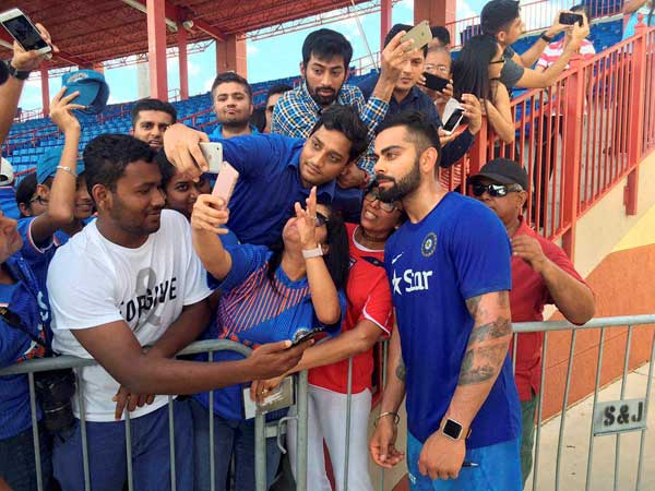 విరాట్ కోహ్లీకి ప్రపంచ వ్యాప్తంగా అనేక మంది అభిమానులు ఉన్నారు. అమెరికాలో భారత్-వెస్టిండిస్ మధ్య జరిగిన టీ20 సిరిస్లో అభిమానులతో కలిసి ఫోటోలకు ఫోజులిస్తున్న టెస్టు కెప్టెన్ కోహ్లీ.