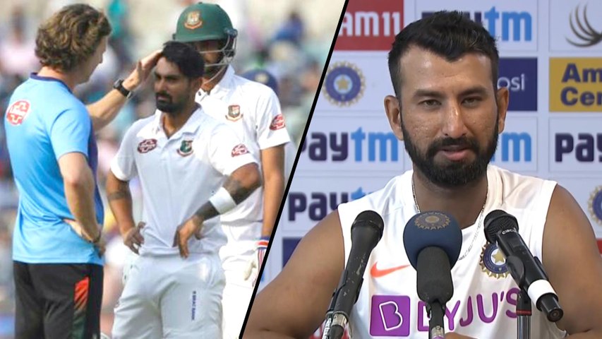 "భారత పేసర్ల బౌన్సర్లు బంగ్లా ఆటగాళ్ల హెల్మెట్లకు బంతి తగలడానికి గల కారణాలు వెలుతురు, పింక్ బాల్. షార్ట్ పిచ్ బంతులను అంత తేలిక కాదు. భారత బౌలింగ్కు తగ్గట్టు బంగ్లా బ్యాట్స్మెన్ ఆడలేకపోతున్నారు. ఇలాంటి పరిస్థితుల్లో బ్యాట్స్మెన్కు షాట్ సెలెక్షన్ అంత తేలిక కాదు. బంగ్లా ఆటగాళ్లు పింక్ బాల్తో ఇప్పటిదాకా ఒక్క ఫస్ట్క్లాస్ మ్యాచ్ కూడా ఆడలేదనుకుంటున్నా" అని పుజారా పేర్కొన్నాడు.