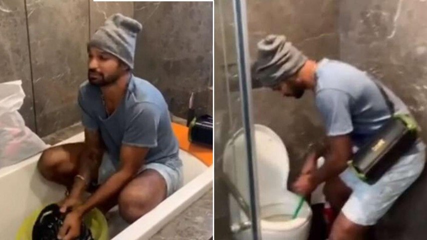 టాయ్లెట్ కడిగిన ధావన్: