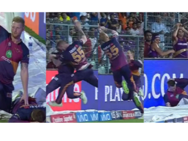 19వ ఓవర్ ఐదో బంతిని కోల్కతా ఆటగాడు కోల్టర్ నీల్ భారీ షాట్ ఆడాడు. బౌండరీ అవతలపడే బంతిని ఎలాగైనా ఆపాలని, వీలైతే క్యాచ్ పట్టాలని స్టీవ్ స్మిత్ యత్నించాడు. అదే సమయంలో బెన్ స్టోక్స్ కూడా బంతిని ఆపాలని పరుగెత్తుకుంటూ బౌండరీ లైన్ వద్దకు వచ్చాడు.
