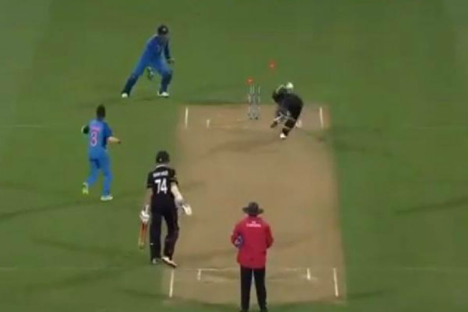 అయితే, అతడి శరీరాన్ని తాకిన బంతి ధోని పక్క నుంచి వికెట్లకి దూరంగా వెళ్లింది. బంతి ఎక్కడికి వెళ్లిందోనని తెలుసుకునేందుకు కొన్ని క్షణాల సమయం తీసుకున్నాడు. అదే సమయంలో వికెట్ల వెనుకన ఉన్న బంతిని చూసి పరుగు కోసం సాహసోపేతంగా క్రీజు వెలుపలికి వెళ్లాడు. అయితే.. అప్పటికే బంతిని అందుకున్న ధోని రెప్పపాటులో దానిని వికెట్లపైకి విసిరాడు.
