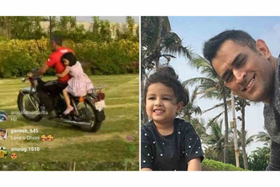 అతనికి సంబంధించిన ప్రతీ అప్డేట్ను తన సోషల్ మీడియా ఖాతాల వేదికగా పంచుకుంటుంది. తాజాగా ధోనీ.. తన కూతురు జీవాను బైక్పై ఎక్కించుకొని షికారుకు వెళ్లిన వీడియోను పంచుకుంది. దీనికి ‘ఇద్దరు పిల్లలు ఇక్కడ ఆడుకుంటున్నారు.. మా పెద్దోడు.. చిన్నోడు'అని క్యాప్షన్గా పేర్కొంది. అయితే లాక్డౌన్ వేళ ధోనీ బైక్ షికారు ఎలా వెళ్లాడనే సందేహం కలగొచ్చు. కానీ ధోనీ ఎలాంటి నిబంధనలను ఉల్లంఘించలేదు. సువిశాలమైన తన ఫామ్హౌస్లో జీవాతో బుల్లెట్పై చక్కర్లు కొట్టాడు.