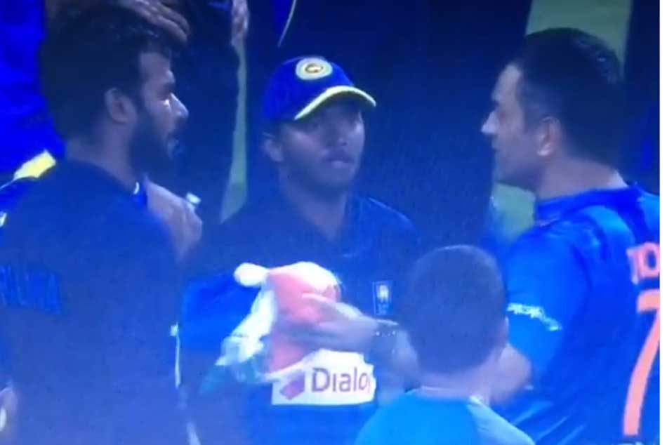 భారత పర్యటనకు వచ్చిన శ్రీలంక జటు మూడ ఫార్మాట్లలో కూడా పేలవ ఫామ్ను ప్రదర్శించింది. దీంతో మూడో టీ20 అనంతరం అవార్డుల కార్యక్రమం జరుగుతున్న సమయంలో ఆ జట్టు కెప్టెన్ తిషారా పెరీరాను కామెంటేటర్ సంజయ్ మంజ్రేకర్ ఇంటర్వ్యూ చేస్తున్న సమయంలో శ్రీలంక ఆటగాళ్లు కొందరు ధోని వద్దకు వచ్చారు.