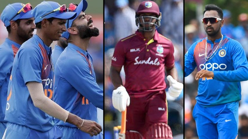 అయితే పొలార్డ్ (8), హెట్మైర్ (6)లు ఆదుకునేందుకు ప్రయతించారు. విండీస్ స్కోర్ 16వ ఓవర్లో 98/4తో ఉన్న దశలో మైదాన సమీపంలో పిడుగులు పడుతుండటంతో అంపైర్లు మ్యాచ్ను ఆపేశారు. తర్వాత వర్షం కూడా మొదలైంది. భారీ వర్షం పడడంతో మ్యాచ్ కొనసాగడానికి వీలుకాలేదు. డక్వర్త్ లూయిస్ నిబంధనల ప్రకారం టీమిండియా 22 పరుగుల తేడాతో నెగ్గింది. డ/లూ పద్ధతిలో విండీస్ స్కోర్ 120 పరుగులు ఉంటే గెలిచేది. 'మ్యాన్ ఆఫ్ ద మ్యాచ్' కృనాల్కు దక్కింది.