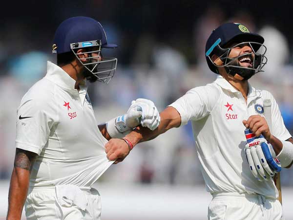 టాస్ గెలిచి బ్యాటింగ్ ఎంచుకున్న టీమిండియాకు కేఎల్ రాహుల్ రూపంలో ఆదిలోనే ఎదురు దెబ్బ తగిలింది. ఆ తర్వాత బ్యాటింగ్ వచ్చిన పుజారా 83 పరుగులు చేసి పెవిలియన్కు చేరగా, ఓపెనర్ మురళీ విజయ్, కెప్టెన్ కోహ్లీ సెంచరీలు సాధించారు.