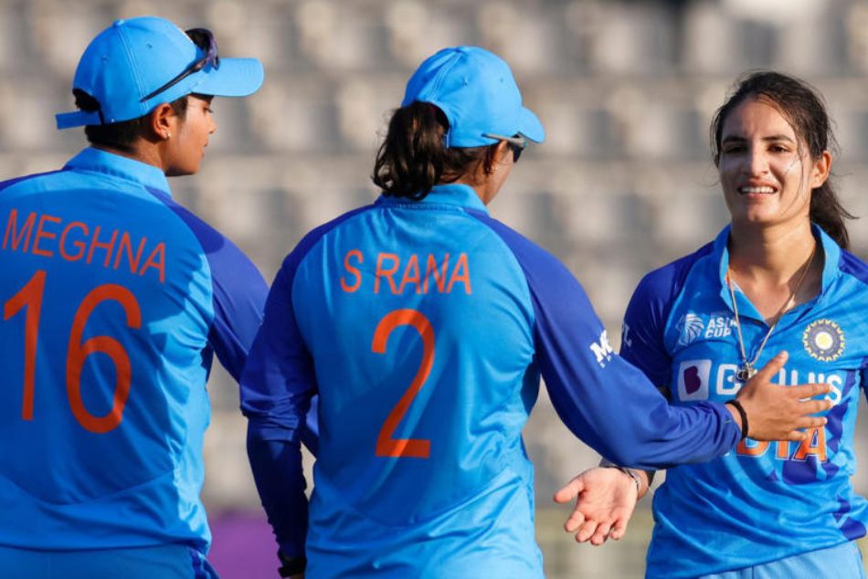 సిల్హేట్(బంగ్లాదేశ్): మహిళల ఆసియాకప్లో భారత జట్టు జైత్రయాత్ర కొనసాగుతోంది. ఇప్పటికే సెమీఫైనల్ చేరిన హర్మన్ప్రీత్ కౌర్ సారథ్యంలోని భారత జట్టు.. సోమవారం థాయ్లాండ్ మహిళలతో జరిగిన ఏకపక్ష మ్యాచ్లో 9 వికెట్ల తేడాతో ఘన విజయాన్నందుకుంది. ఈ మ్యాచ్లో ముందుగా బ్యాటింగ్ చేసిన థాయ్లాండ్ టీమ్.. భారత బౌలర్ల ధాటికి 15.1 ఓవర్లలో 37 పరుగులకే కుప్పకూలింది. ఆ జట్టు ఓపెనర్ నాన్నపట్(12) ఒక్కతే రెండు అంకెల స్కోర్ చేయగా.. మిగతా బ్యాటర్లంతా సింగిల్ డిజిట్కే పరిమితయ్యారు.
