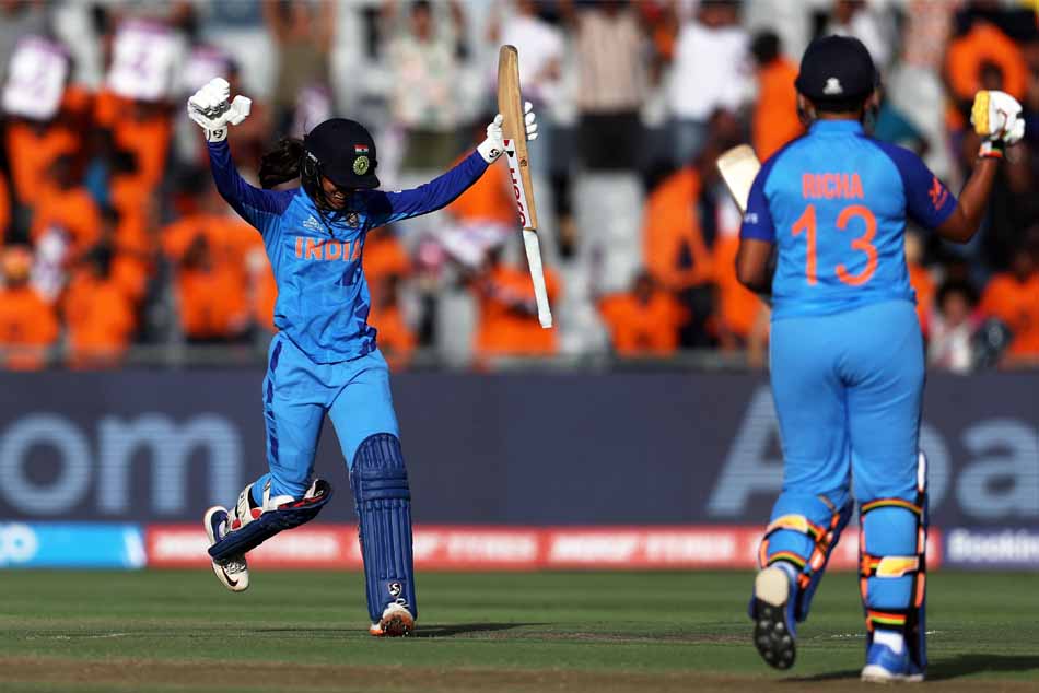 గతేడాది టీ20 ప్రపంచకప్లో పాకిస్థాన్పై విరాట్ కోహ్లీ ఆడిన ఆసాధారణ ఇన్నింగ్స్ను తలపిస్తూ జెమీమా చెలరేగింది. 17వ ఓవర్లో జెమీమా, రిచా చెరో ఫోర్ కొట్టడంతో మొత్తం 13 పరుగులు వచ్చాయి. భారీ షాట్లను అలవోకగా ఆడగలిగే రిచా.. ఆ తర్వాతి ఓవర్లో హ్యాట్రిక్ ఫోర్లతో కథ మలుపు తిప్పింది. ఆ ఓవర్లో మొత్తం 14 పరుగులు రావడంతో జట్టు గెలుపునకు 12 బంతుల్లో 14 పరుగులు కావాల్సి వచ్చింది. ఇన్నింగ్స్కు ఇరుసులా నిలిచిన జెమీమా 19వ ఓవర్లో మూడు ఫోర్లతో పని పూర్తి చేసింది. రెండో బంతికి ఆఫ్సైడ్ జరిగి స్క్వేర్లెగ్లో బౌండరీ సాధించి ఒత్తిడి తగ్గించుకున్న ఆమె.. చివరి రెండు బంతులకు ఫోర్లు కొట్టి జట్టుకు విజయాన్ని అందించడంతో పాటు అర్ధశతకాన్ని చేరుకుంది.