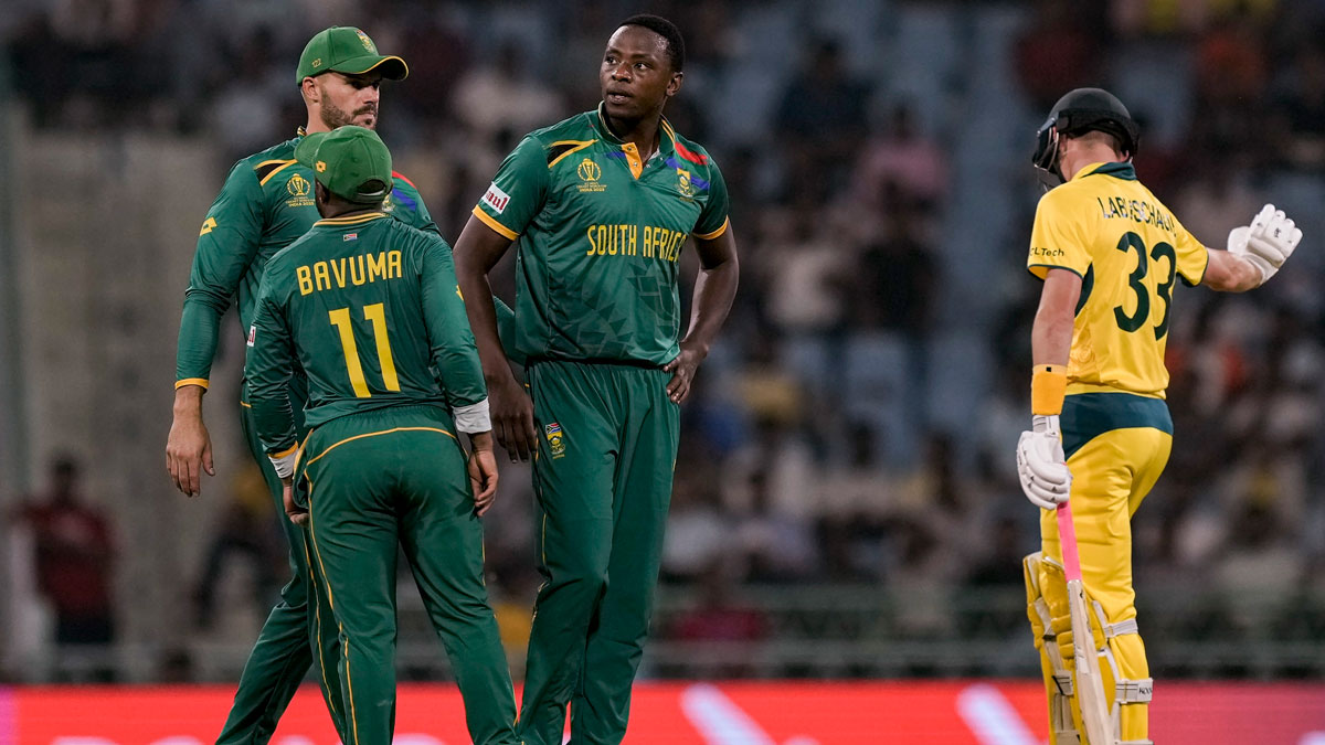 అనంతరం లక్ష్య చేధనకు దిగిన ఆస్ట్రేలియా సౌతాఫ్రికా పేసర్ల ధాటికి 40.5 ఓవర్లలో 177 పరుగులకే కుప్పకూలింది. ఆసీస్ బ్యాటర్లలో మార్నస్ లబుషేన్(74 బంతుల్లో 3 ఫోర్లతో 46) మినహా అంతా విఫలమయ్యారు. సౌతాఫ్రికా బౌలర్లలో రబడా(3/33) మూడు వికెట్లు తీయగా.. మార్కో జాన్సెన్(2/54), కేశవ్ మహరాజ్(2/30), టబ్రైజ్ షంసీ(2/38) రెండేసి వికెట్లు పడగొట్టారు.