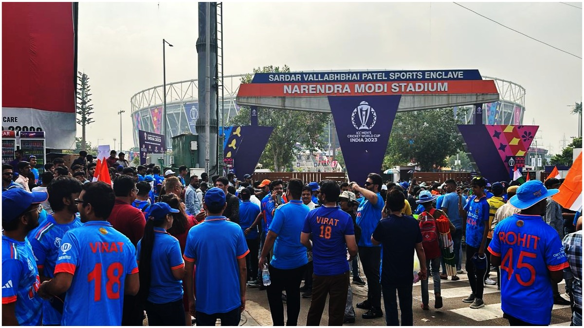 ఈ హైఓల్టేజ్ మ్యాచ్ను తిలకించడానికి అభిమానులు పోటెత్తారు. లక్షా 30 మంది అభిమానులు ఈ మ్యాచ్ను ప్రత్యక్షంగా తిలకించనున్నారు. ఈ ఉదయం నుంచే నరేంద్ర మోదీ స్టేడియానికి పోటెత్తారు ఫ్యాన్స్. గుంపులు గుంపులుగా చేరుకున్నారు. స్టేడియానికి దారి తీసే మార్గాలన్నీ రద్దీతో నిండిపోయాయి. ట్రాఫిక్ జామ్ ఏర్పడింది.
