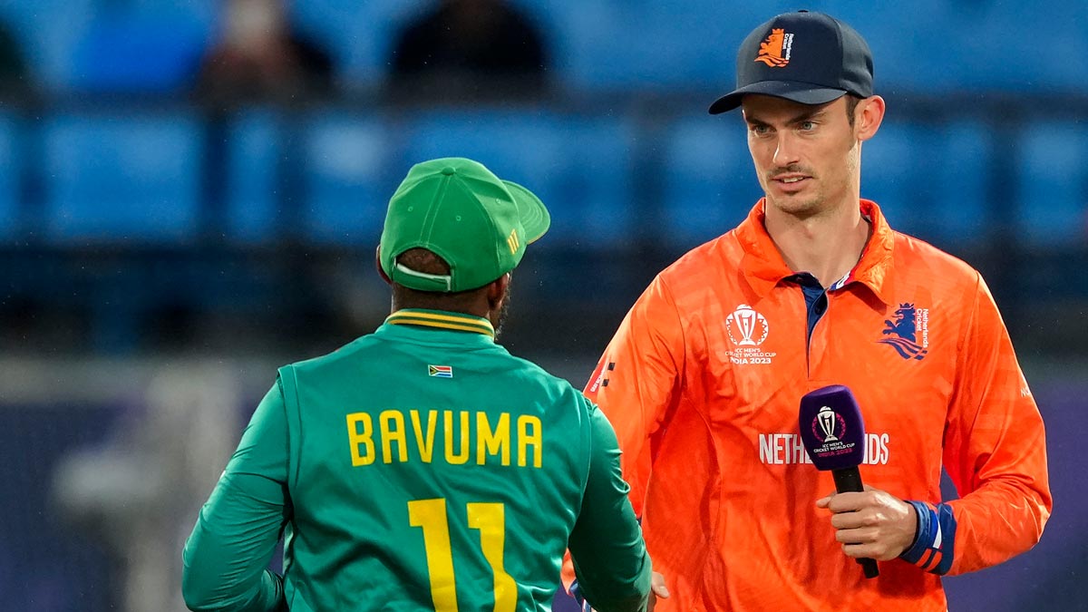 తమ టీమ్ నిలకడగా రాణించడం సంతోషంగా ఉందని చెప్పాడు. అలాగే తమ టీంలో ఒకే ఒక మార్పు చేశామని వెల్లడించాడు. స్టార్ స్పిన్నర్ తబ్రైజ్ షంసీ ఈ మ్యాచ్ ఆడటం లేదని, అతని స్థానంలో గెరాల్డ్ కొట్జీ ఆడుతున్నాడు అని చెప్పాడు. తను టాస్ గెలిచి ఉంటే తాను కూడా ముందు బౌలింగ్ తీసుకునే వాడినని నెదర్లాండ్స్ కెప్టెన్ స్కాట్ ఎడ్వర్డ్స్ చెప్పాడు.