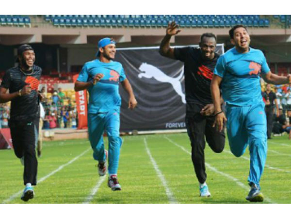 2014లో ఓ కార్యక్రమంలో పాల్గొనేందుకు గాను ఉసేన్ బోల్ట్ బెంగళూరు వచ్చాడు. బోల్ట్కి క్రికెట్ అంటే చాలా ఇష్టం. ఈ విషయాన్ని పలు సందర్భాల్లో ప్రస్తావించాడు కూడా. అయితే బెంగళూరు వచ్చినప్పుడు బోల్ట్ యువీతో కలిసి సరదాగా క్రికెట్ ఆడాడు. ఆ తర్వాత ఇద్దరూ కలిసి 100 మీటర్ల పరుగు పందెంలో పాల్గొన్నారు.