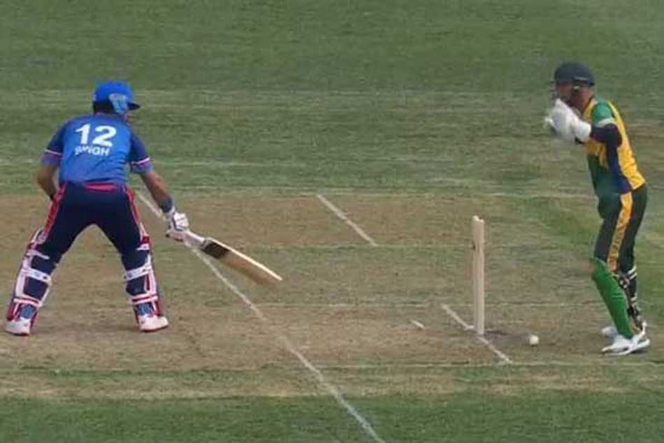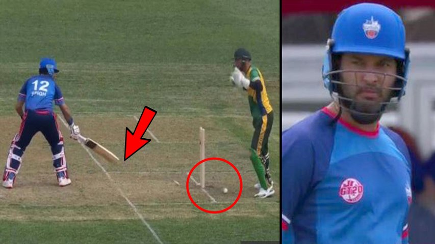 కానీ, అది బ్యాట్కు తగలకుండా నేరుగా బంతి కీపర్ చేతిని తాకి వికెట్లకు తగిలింది. అయితే, ఈ సమయంలో యువరాజ్ కాలు క్రీజ్లోనే ఉంది. కానీ, యువీ ఔట్గా భావించి అంపైర్ నిర్ణయం కోసం ఎదురు చూడకుండానే మైదానాన్ని వీడాడు. యువరాజ్ ఈ మ్యాచ్లో 27 బంతుల్లో 14 పరుగులు చేశాడు.