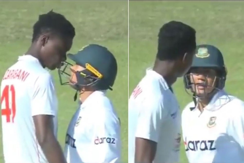 బ్లెస్సింగ్ ముజరబాణి విసిరిన ఓ షార్ట్ పిచ్ బంతిని ఆడకుండా వదిలేసిన తస్కిన్ అహ్మద్.. బంతి వెళ్లిన తీరుని యాక్షన్తో చూపించాడు. పిచ్పైనే డ్యాన్స్ చేసిన విధానం ముజరబానికి నచ్చలేదు. వెంటనే తస్కిన్ వద్దకి వెళ్లి నోటికి పనిచెప్పగా.. అతను కూడా బౌలర్ కళ్లలోకి చూస్తూ బదులిచ్చాడు. ఇద్దరూ ఒకరి ముఖంలో మరొకరు కోపంగా చూసుకున్నారు. ఇద్దరి మధ్య హెల్మెట్ మాత్రమే అడ్డుగా ఉంది. దీనికి సంబందించిన వీడియో ప్రస్తుతం సోషల్ మీడియాలో వైరల్ అయింది.