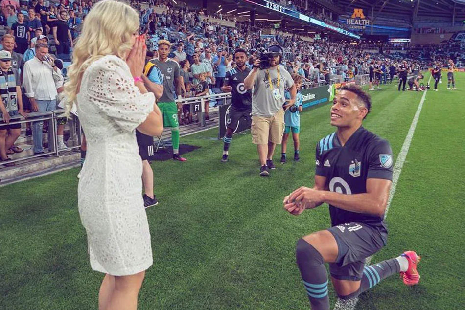 మిన్నెసోటా ఎఫ్సీ, సాన్ జోస్ ఎర్త్క్వేక్స్ మధ్య మ్యాచ్ డ్రాగా ముగియగానే హసానీ స్టీఫెన్సన్ మైదానంలో ఉన్న తన గర్ల్ఫ్రెండ్ పెట్రా వుకోవిక్ దగ్గరికి వెళ్లాడు. మొకాలిపై కూర్చొని 'విల్ యు మ్యారీ మీ' అని ఉంగరంతో ప్రపోజ్ చేశాడు. స్టీఫెన్సన్ ఇచ్చిన సర్ప్రైజ్తో పెట్రా షాక్కు గురైంది. ఆపై అతని ప్రపోజల్కు ఓకే చెప్పేసింది. అనంతరం ఉంగరాన్ని ప్రేయసి చేతికి తొడగి.. తన ప్రేమను జీవితాంతం గుర్తుండిపోయేలా చేశాడు. తర్వాత ఇద్దరూ కౌగిలించుకొని ముద్దు పెట్టుకోవడంతో స్టేడియం అంతా హోరెత్తిపోయింది.
