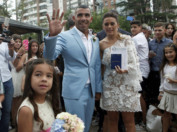 బైనోస్ ఎయిరెస్: అర్జెంటీనా ప్రముఖ ఫుట్ బాల్ ప్లేయర్ కార్లోస్ తెవెజ్ తన చిన్న నాటి స్నేహితురాలు వానెసా మాంసిల్లాను పెండ్లి చేసుకున్నాడు. అర్జెంటీనాలోని సాన్ ఇసిడ్రో నగరంలో వారిద్దరి వివాహం గురువారం ఉదయం జరిగింది.