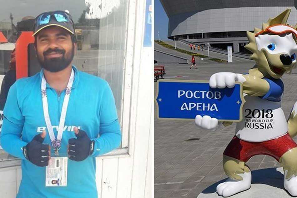 మొదట కొచ్చి నుంచి దుబాయ్కి విమానంలో వెళ్లాడు. దుబాయ్లో ఓ సైకిల్ కొనుక్కుని దుబాయ్, ఇరాన్, అజీర్బైజాన్ దేశాల మీదుగా రోడ్డు మార్గం ద్వారా 4 వేల కిలోమీటర్లు సైకిల్ తొక్కి రష్యాకు చేరుకున్నాడు. ఇప్పటికే ఫిఫా ప్రపంచ కప్లో 11 మ్యాచ్లు పూర్తయ్యాయి.
