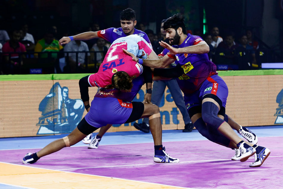 ఆట ఆరంభంలో దీపక్ హుడా (10), దీపక్ నర్వాల్ (5) చెలరేగడంతో ఆరు నిమిషాలు ముగిసేసరికి జైపుర్ 7-4తో ఆధిక్యంలో నిలిచింది. ఈ సమయంలో చంద్రన్ రంజిత్ ఆల్రౌండ్ ప్రదర్శనతో ఆకట్టుకోవడంతో పుంజుకున్న డిల్లీ 9-9తో స్కోరు సమం చేసింది. మరోవైపు నవీన్ కూడా దూకుడు పెంచడంతో జైపుర్ను తొలిసారి ఆలౌట్ చేసిన డిల్లీ 16-10తో తొలి అర్ధ భాగాన్ని ముగించింది.