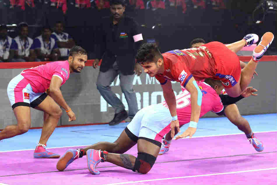మ్యాచ్ ఆరంభంలోనే చంద్రన్ రంజిత్ చెలరేగడంతో రెండో నిమిషంలోనే ఢిల్లీ 5-0తో ఆధిక్యంలోకి దూసుకెళ్లింది. తర్వాత రెండు నిమిషాల తేడాతో జైపూర్ను ఆలౌట్ చేసింది. అయితే, 12వ నిమిషంలో దీపక్ నర్వాల్ ఒకే రైడ్లో ఐదు పాయింట్లు తేవడంతో జైపూర్ అనూహ్యంగా 15-16తో పుంజుకుంది. ఆ తర్వాత రెండు జట్లూ పాయింట్ల కోసం నువ్వానేనా అన్నట్టు పోటీ పడ్డాయి.