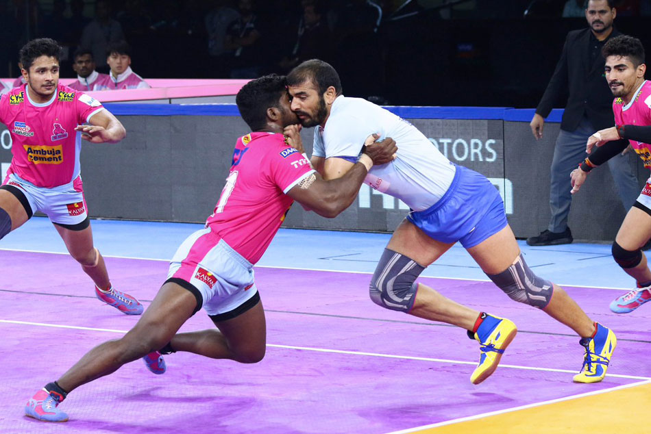 ఆట నాలుగు నిముషాలు ఉందనగా నీలేశ్ సాలుంకే వరుస రైడ్ పాయింట్లు సాధించడంతో జైపూర్ 25-22తో ఆధిక్యంలోకి వెళ్ళింది. ఆఖరి వరకు హోరాహోరీగా సాగిన మ్యాచ్లో జైపూర్ విజయం సాధించింది. పాంథర్స్ తరఫున రైడింగ్లో నీలేశ్ సాలుంకే (7), డిఫెన్స్లో విశాల్ (4) రాణించారు. తలైవాస్ జట్టులో రాహుల్ చౌదరీ (6), వినీత్ శర్మ (3) ఆకట్టుకున్నారు. మరో మ్యాచ్లో పుణేరి పల్టాన్ 31-23తో బెంగళూరు బుల్స్పై గెలిచింది. ఈ రోజు బంగాల్తో పట్నా తలపడనుంది.