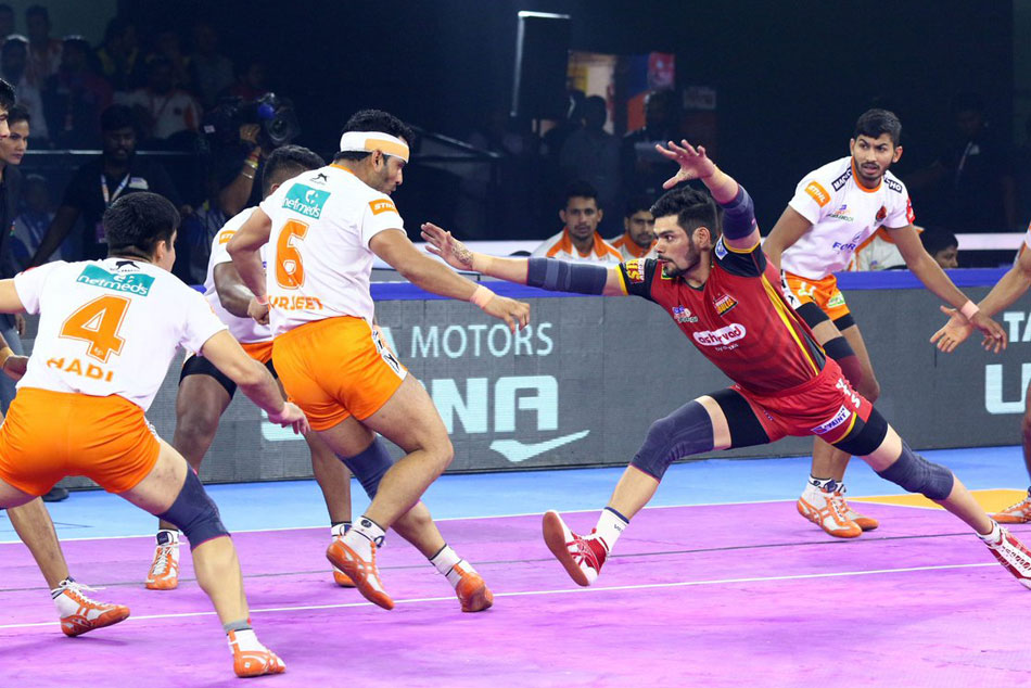 చెన్నై: ప్రొ కబడ్డీ లీగ్ (పీకేఎల్) ఏడో సీజన్లో డిఫెండింగ్ ఛాంపియన్స్ బెంగళూరు బుల్స్కు షాక్ తగిలింది. ట్యాక్లింగ్లో సుర్జీత్ సింగ్ చెలరేగడంతో బుధవారం జరిగిన మ్యాచ్లో పుణెరి పల్టాన్ 31-23 తేడాతో బెంగళూరుపై విజయం సాధించింది. సుర్జీత్ డిఫెన్స్ వ్యూహాల ముందు బుల్స్ స్టార్ రైడర్ పవన్ కుమార్ శెరావత్ ఆటలు సాగలేదు.