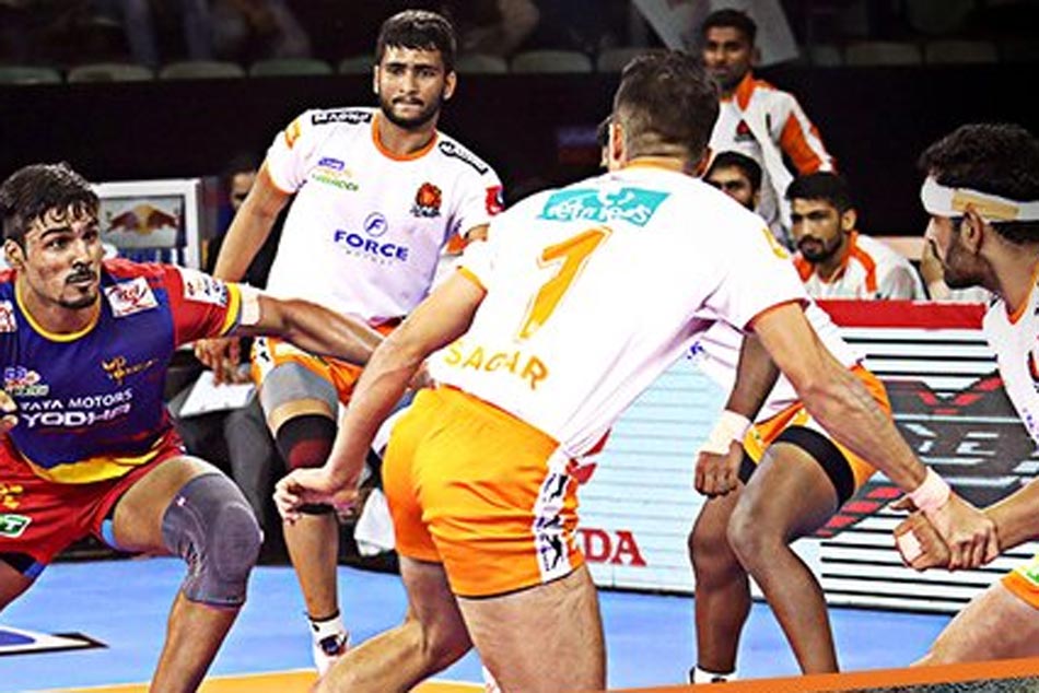 ఢిల్లీ: ప్రొ కబడ్డీ ఏడో సీజన్లో భాగంగా ఢిల్లీలోని త్యాగరాజ్ స్పోర్ట్స్ కాంప్లెక్స్లో సోమవారం రాత్రి జరిగిన మ్యాచ్లో యూపీ యోధ 35-30తో పుణెరి పల్టాన్ను ఓడించింది. యూపీ రైడర్ శ్రీకాంత్ జాదవ్ 15 రైడ్ పాయింట్లతో అదరగొట్టాడు. పల్టాన్ తరఫున మంజీత్ 16 పాయింట్లతో మెరిశాడు. యూపీ డిఫెండర్ సుమిత్ హై 5తో జట్టు విజయంలో కీలక పాత్ర పోషించాడు. యూపీకి ఇది నాలుగో విజయం. యూపీ ప్రస్తుతం 27 పాయింట్లతో ఏడవ స్థానంలో కొనసాగుతోంది. పల్టాన్ 11వ స్థానంలో ఉంది.