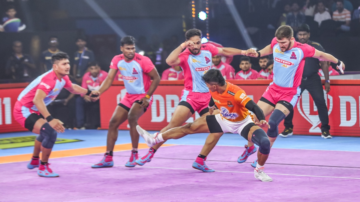 కానీ బ్రేక్ తర్వాత పుణెరి పల్టాన్ రైడింగ్, డిఫెన్స్లో అదరగొట్టింది. ప్రత్యర్థి ఆటగాళ్లను బోల్తాకొట్టిస్తూ పాయింట్లు సాధిస్తూ ఆధిపత్యం చెలాయించింది. రెండో అర్ధభాగంలో జైపుర్ జట్టును పల్టాన్ రెండు సార్లు ఆలౌట్ చేయడం విశేషం. విజయంలో రైడర్లు అస్లాం సూపర్ 10తో, మోహిత్ 8 పాయింట్లతో సత్తాచాటారు.మరోవైపు జైపుర్లో రైడర్ అర్జున్ దేశ్వాల్ 17 పాయింట్లు సాధించాడు. కానీ అతడికి రైడింగ్ మరో ప్లేయర్ సహకరించకపోవడంతో ఆ జట్టుకు ఎదురుదెబ్బ తగిలింది.
