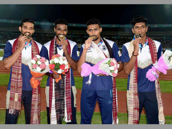 ఇదే పోటీలో దేవేందర్సింగ్ (83.29 మీ) కాంస్యం సాధించాడు. ఇక 4×400 మీ పరుగులో పురుషులు, మహిళల విభాగాల్లో భారత్ స్వర్ణ పతకాలు కైవసం చేసుకుంది. కుంజు మహ్మద్, అమోజ్ జాకబ్, మహమ్మద్ అనాస్, రాజీవ్ అరోకియాతో కూడిన పురుషుల జట్టు 3 నిమిషాల 02.92 సెకన్ల టైమింగ్తో అగ్రస్థానం సాధించింది.