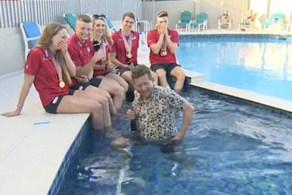 హైదరాబాద్: ఆస్ట్రేలియాలోని గోల్డ్ కోస్ట్ వేదికగా జరుగుతోన్న కామన్వెల్త్ గేమ్స్లో ఓ ఫన్నీ సన్నివేశం చోటు చేసుకుంది. బీబీసీ రిపోర్టర్ మైక్ బుషెల్ లైవ్ రిపోర్టింగ్ చేస్తున్న సమయంలో స్విమ్మింగ్ పూల్లో పడిపోయాడు. బీబీసీ బ్రేక్ఫాస్ట్ షో కోసం స్విమ్మింగ్లో మెడల్ సాధించిన ఇంగ్లాండ్ టీమ్తో ఇంటర్వ్యూ తీసుకుంటున్నాడు.