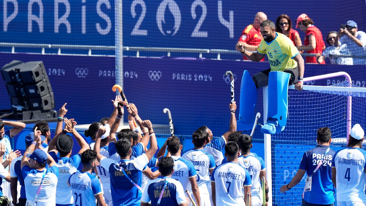 తన ఆఖరి మ్యాచ్లో గోల్కీపర్గా శ్రీజేష్ తన మార్క్ చూపించాడు. భారత గోల్ పోస్ట్కు అడ్డు గోడలా నిల్చొని స్పెయిన్ గోల్స్ను సమర్థవంతంగా అడ్డుకున్నాడు. ఈ విజయానంతరం భారత ఆటగాళ్లు శ్రీజేష్కు స్టాండింగ్ ఓవేషన్ ఇచ్చారు. తమ భుజాలపై ఎత్తుకొని గోల్ పోస్ట్ పోల్పై కూర్చోబెట్టారు. అనంతరం తమ హాకీ స్టిక్స్తో శ్రీజేష్కు జేజేలు పలికారు.