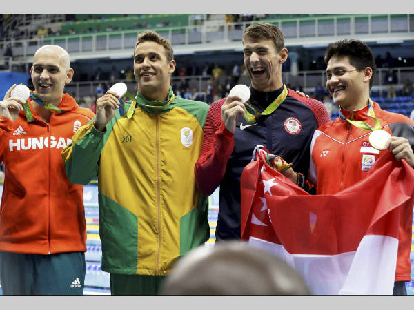 ఆ తర్వాత రియోలో శుక్రవారం జరిగిన పురుషుల 100 మీటర్ల బటర్ ఫ్లై విభాగంలో పాల్గొన్న స్కూలింగ్ 50.39 సెకన్లలో ఈవెంట్ పూర్తి చేసి బంగారు పతకాన్ని ఒడిసిపట్టగా, 22 బంగారు పతకాలతో రికార్డు సృష్టించిన ఫెల్ఫ్స్ వరుస విజయాలకు తెరదించి అతన్ని రజతానికి పరిమితం చేశాడు.