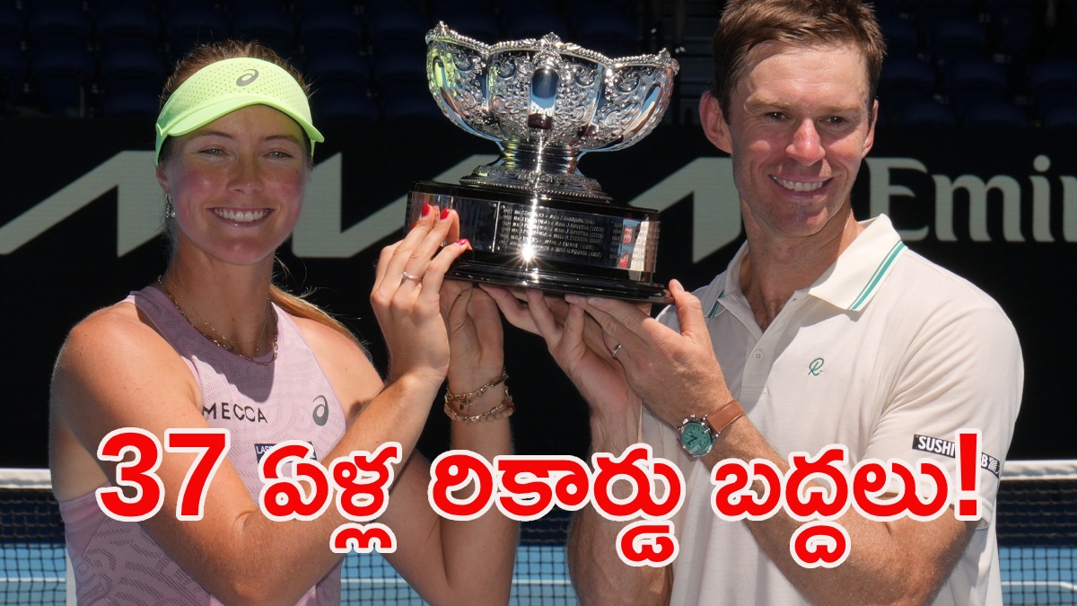 Australian Open 2026: ఆస్ట్రేలియన్ ఓపెన్ 2026లో ఆతిథ్య దేశానికి చెందిన జోడీ సరికొత్త చరిత్ర సృష్టించింది. మిక్స్డ్ డబుల్స్ విభాగంలో వరుసగా రెండో ఏడాది టైటిల్ గెలుచుకుని, దశాబ్దాల కాలం నాటి రికార్డులను తిరగరాసింది. మెల్బోర్న్ వేదికగా జరుగుతున్న ఆస్ట్రేలియన్ ఓపెన్ 2026లో ఒలివియా గాడెకీ - జాన్ పీర్స్ జోడీ అద్భుతం చేసింది. మిక్స్డ్ డబుల్స్ ఫైనల్లో ఈ ఆస్ట్రేలియా జోడీ ఫ్రాన్స్కు చెందిన క్రిస్టినా మ్లాడెనోవిక్ - మాన్యుయెల్ గినార్డ్ జోడీపై అద్భుత విజయం సాధించి విజేతలుగా నిలిచారు.