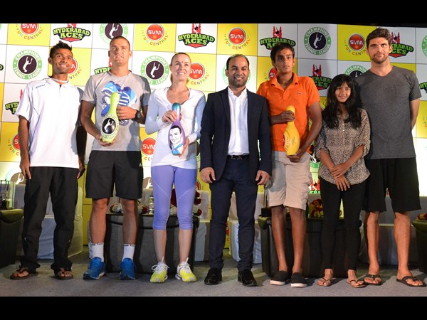 కూకట్పల్లిలోని ది ఫోరం సుజనా మాల్లో ఏర్పాటైన ఎస్వీఎం ఫన్ సెంట్రల్లో పాల్గొన్న హైదరాబాద్ ఏసెస్ టెన్నిస్ జట్టు ఆటగాళ్లు.