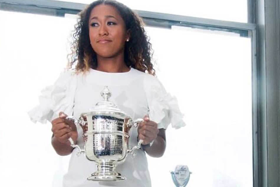 ఓ ప్రచార కార్యక్రమంలో యుఎస్ ఓపెన్ సింగిల్స్ ట్రోఫీతో జపనీస్ టెన్నిస్ స్టార్ నవోమీ ఒసాకా.