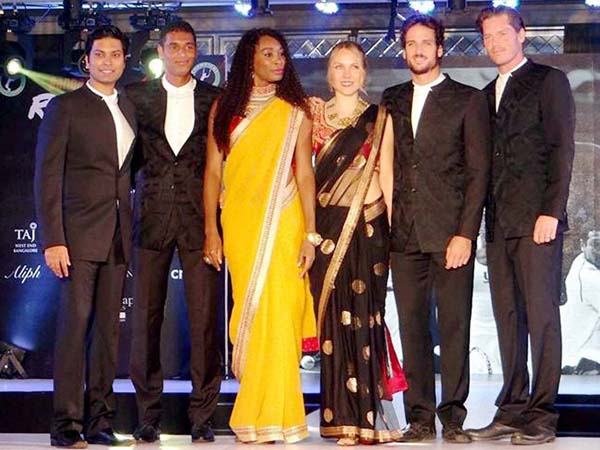 పసుపు పచ్చ రంగు, బంగారు వర్ణం బార్డర్ ఉన్న చీరను ధరించి అలరించారు. ఈ చీరను రీతు కుమార్ డిజైన్ చేశారు. దాని పైన ఎరుపు రంగు జాకెట్ ధరించారు. అనంతరం చీరతో ర్యాంప్ పైన హొయలు పోయారు. వీనస్ విలియమ్స్ తనకు సూట్ అయ్యే చీరను ఎంచుకొని కట్టుకున్నారు.